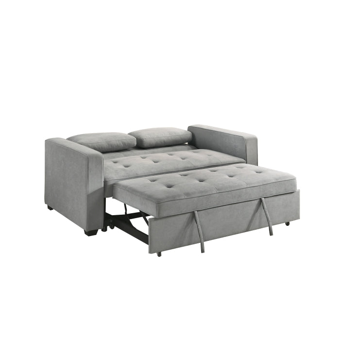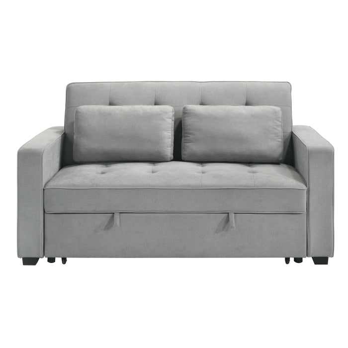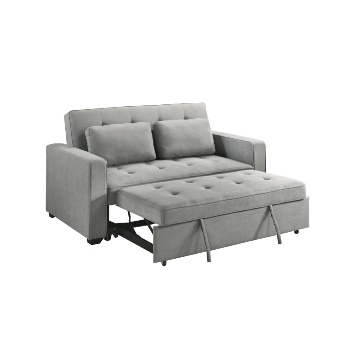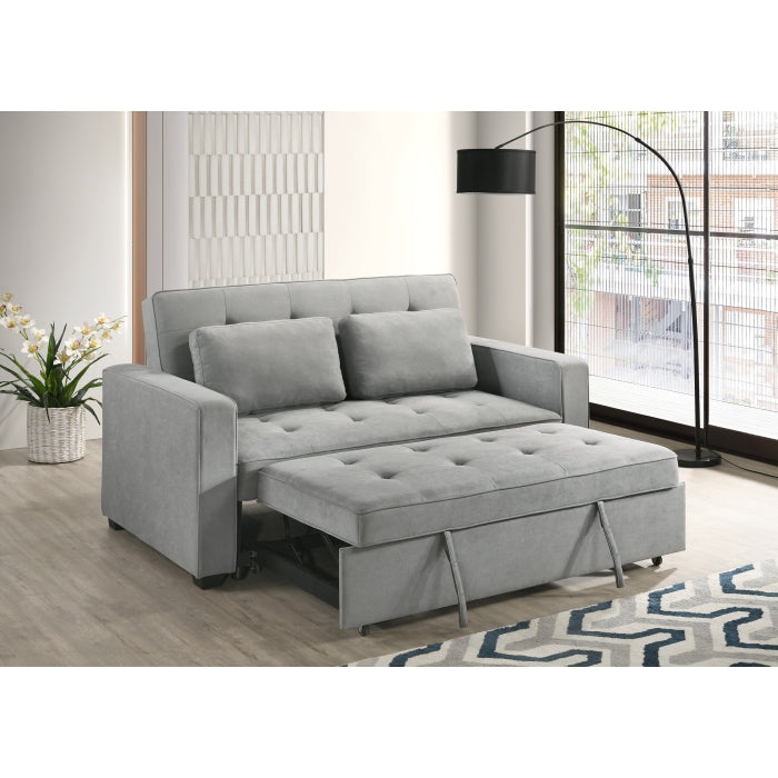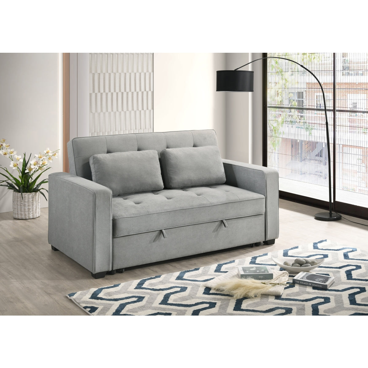 The Wodehouse Grey Sofa Bed offers a sophisticated blend of style and practicality, ideal for optimizing your living space. Its pull-out seat with casters and adjustable tight back converts the sofa into a spacious bed effortlessly. Complemented by two versatile pillows that provide lumbar support or headrest comfort, this piece features a soft light grey fabric with piped seams and biscuit tufting for a refined, modern look. Whether used for daily relaxation or accommodating guests, the Wodehouse provides a multifunctional solution that enhances both form and function in your home.