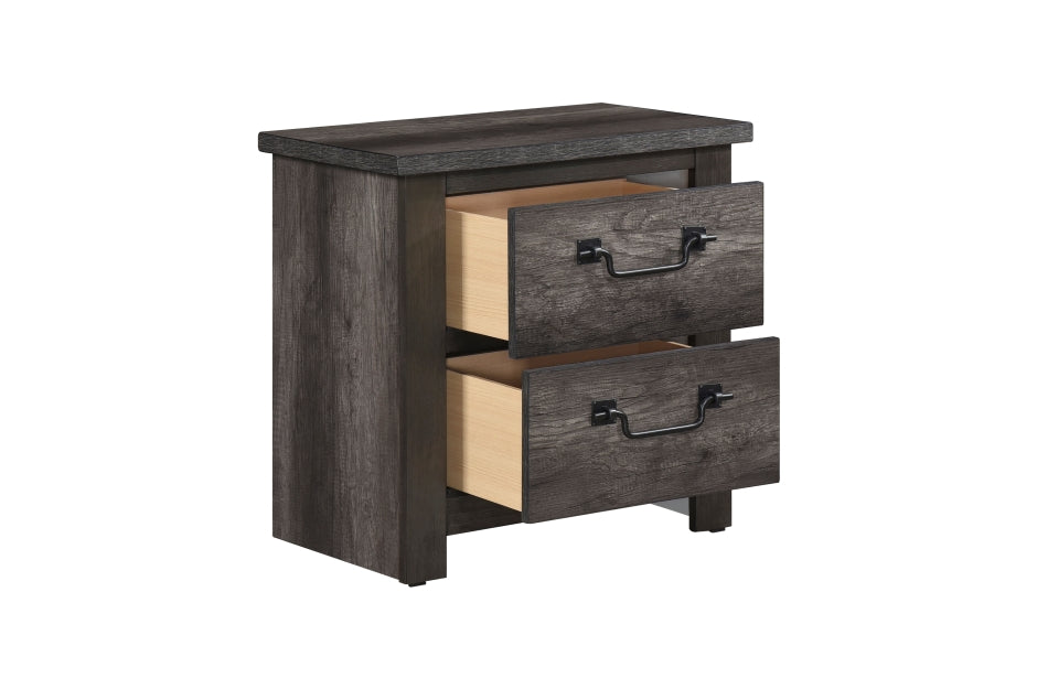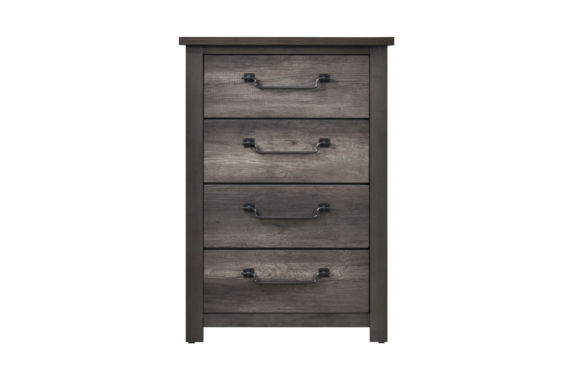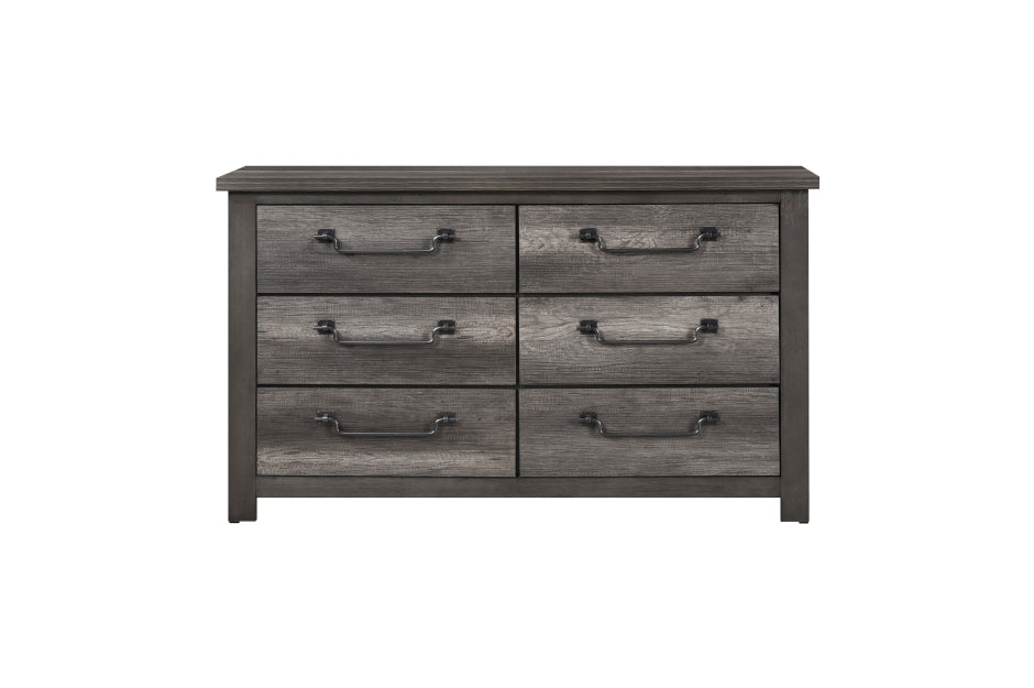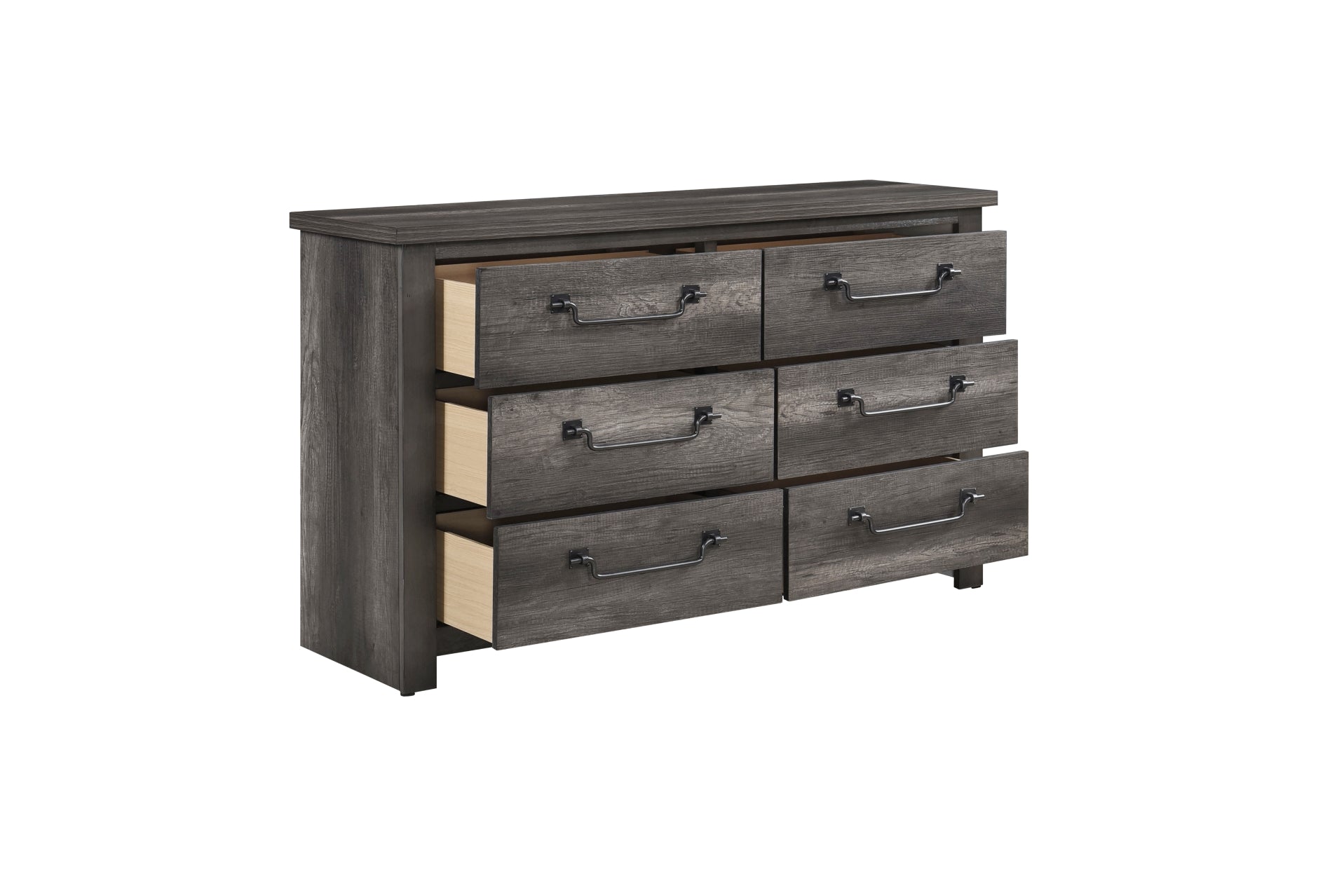 The Lenior Bedroom Set (8 Piece)features subtle design details that merge rustic, industrial, and transitional styles with a classic foundation. Its gray melamine laminate finish replicates the texture of wood while ensuring long-lasting durability. Complementing this, the gunmetal-hued metal drop hardware on drawer fronts introduces an industrial flair across the nightstand, dresser, and chest. This set offers a balanced blend of aesthetic appeal and practical resilience for a refined bedroom setting.