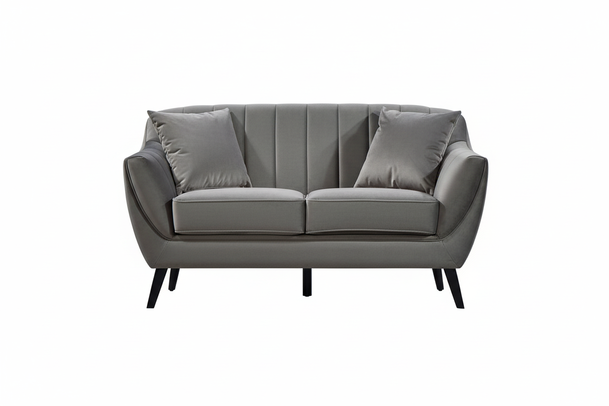 The Odette Loveseat combines mid-century design with modern sophistication. Its streamlined frame fits seamlessly into compact spaces while channel tufting and velvet upholstery deliver refined luxury. Cushioned arms and a contoured back provide both comfort and elegance.