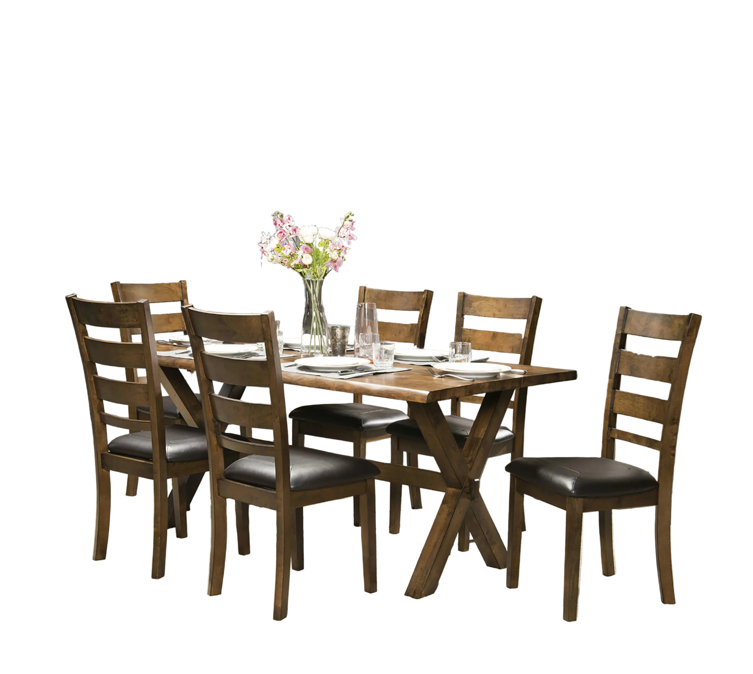 The Sansa Dining Set showcases a warm oak finish that highlights its natural beauty. The centerpiece is a dining table featuring a distinctive single live edge, providing an organic contrast that defines the collection’s rustic, log cabin aesthetic. Complemented by side chairs and an optional bench, this set combines craftsmanship with functionality, creating an inviting space that balances sophistication and natural charm.
